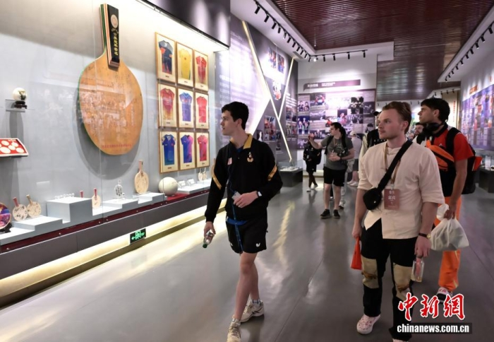 4月11日,“青年之友”中美青少年友好交流暨中美“乒乓外交”55周年纪念活动在河北石家庄举行。图为活动嘉宾参访河北正定国家乒乓球训练基地。中新社记者 翟羽佳 摄